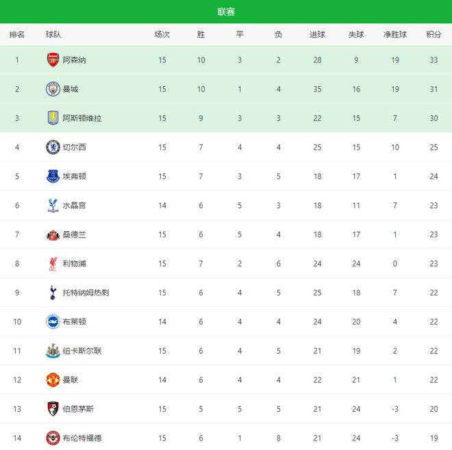 随着维拉2-1绝杀阿森纳+利物浦3-3!英超最新积分榜:曼城连胜